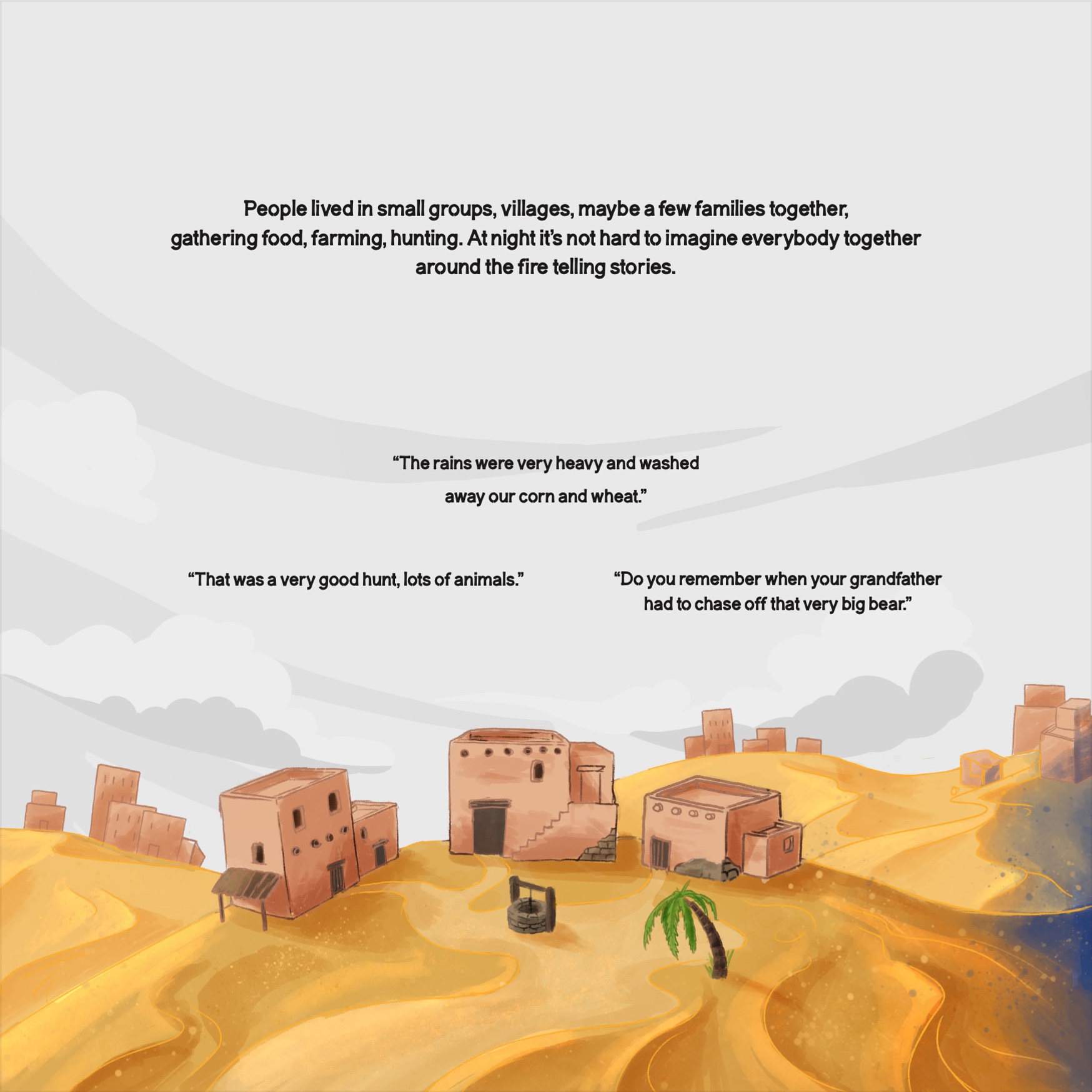 This secular Genesis opens with a discussion of how we as people lived long ago, why we told stories and created mythologies, it then progresses to the seven days of Creation, Adam and Eve, Cain and Abel, Noah, Abraham, Isaac, Jacob and concludes with Joseph in Egypt. The book is by no means a complete retelling of Genesis, rather it is a quick introduction meant to familiarize kids with the story and introduce the main characters.